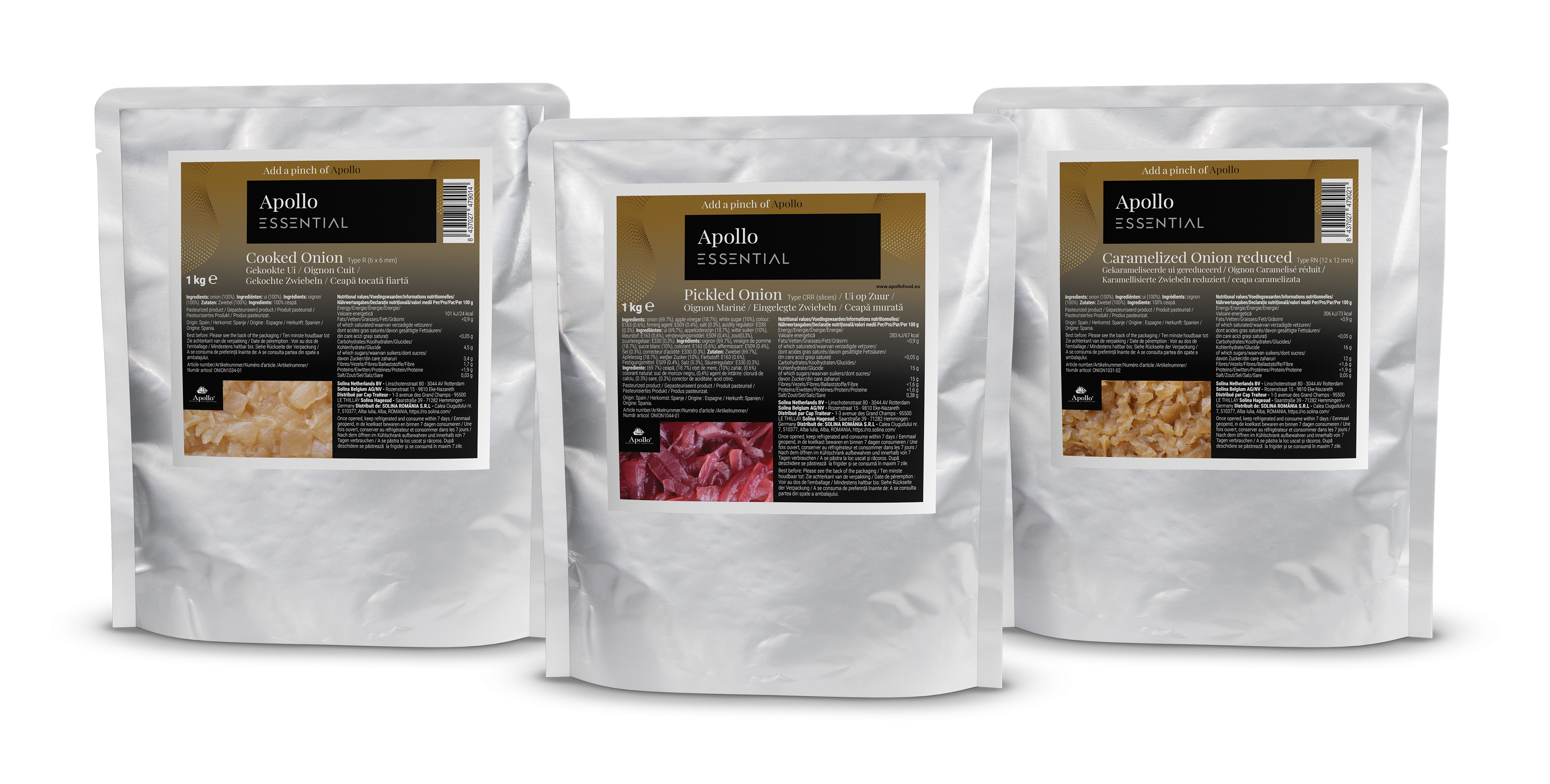 De Apollo Essential uienlijn biedt gebruiksklare uien in drie varianten: gekookt, gekarameliseerd en gemarineerd. Ze zijn ontworpen om het leven van chefs te vereenvoudigen en tegelijkertijd hoogwaardige resultaten te leveren. Deze producten besparen tijd, verlagen de energiekosten en behouden hun versheid langdurig. Gekweekt in Spanje en bereid in Valencia, combineren de Apollo Essential uien praktisch nut, duurzaamheid en authenticiteit. Perfect als ingrediënt of garnering, vormen ze een economische en veelzijdige oplossing voor professionele keukens.